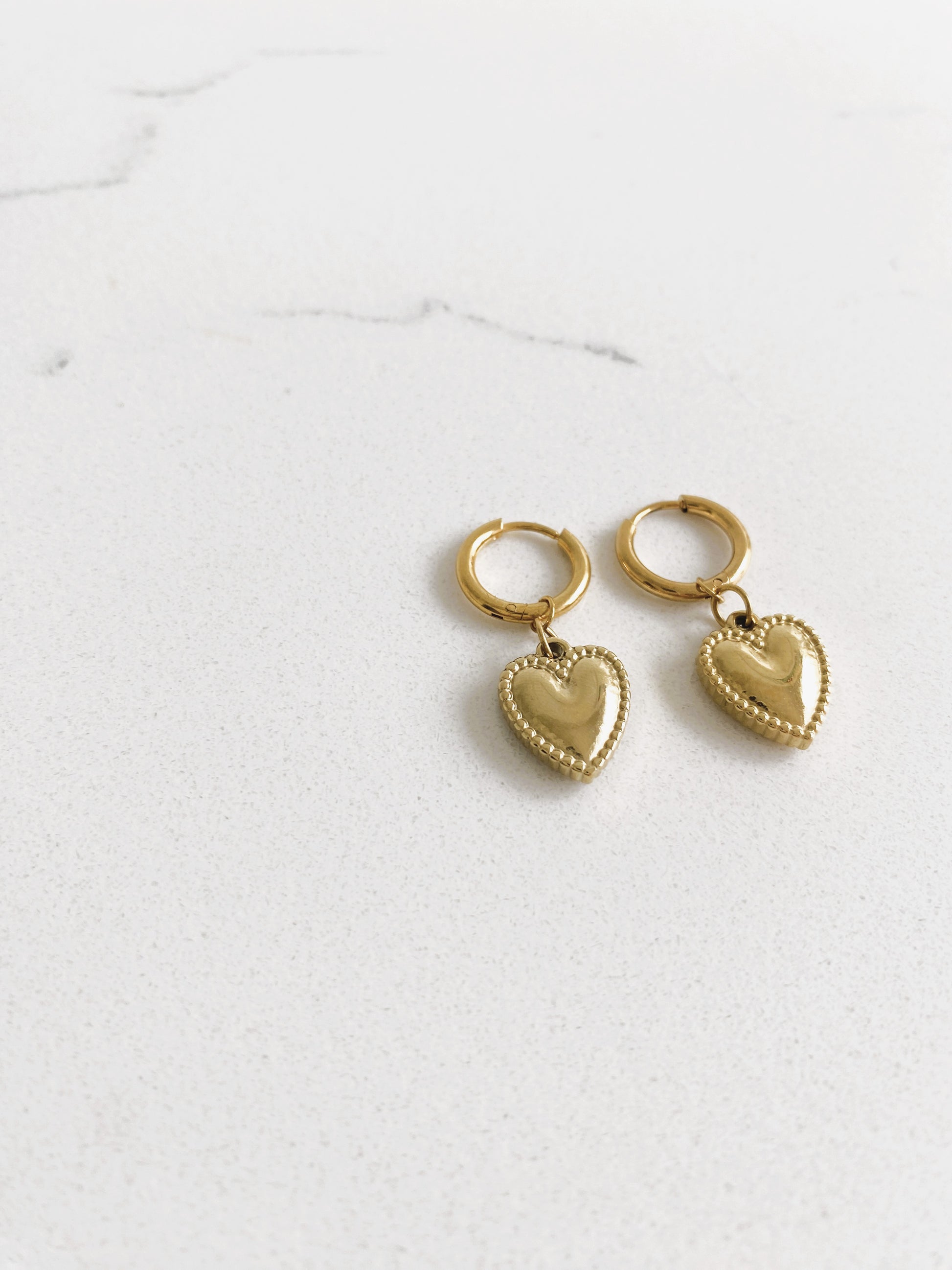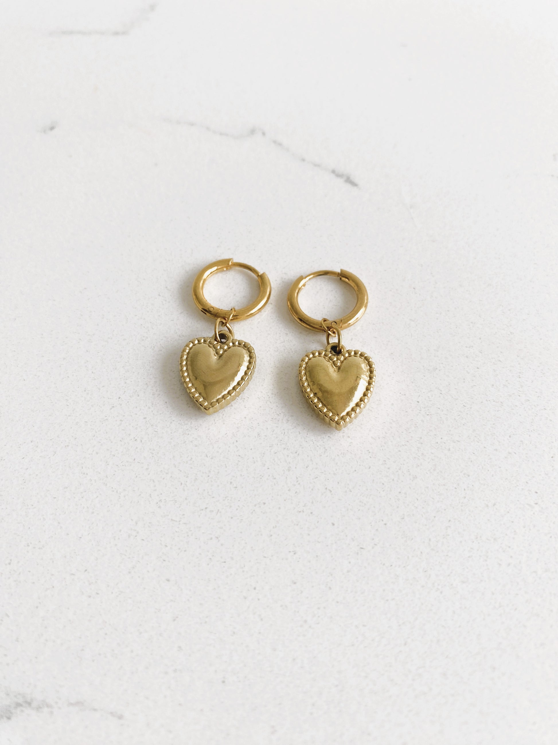 These elegant heart-shaped earrings are available in small, medium, or large hoop sizes. Beautifully designed, these earrings are waterproof, hypoallergenic, and tarnish-resistant, they combine beauty with lasting comfort and durability.