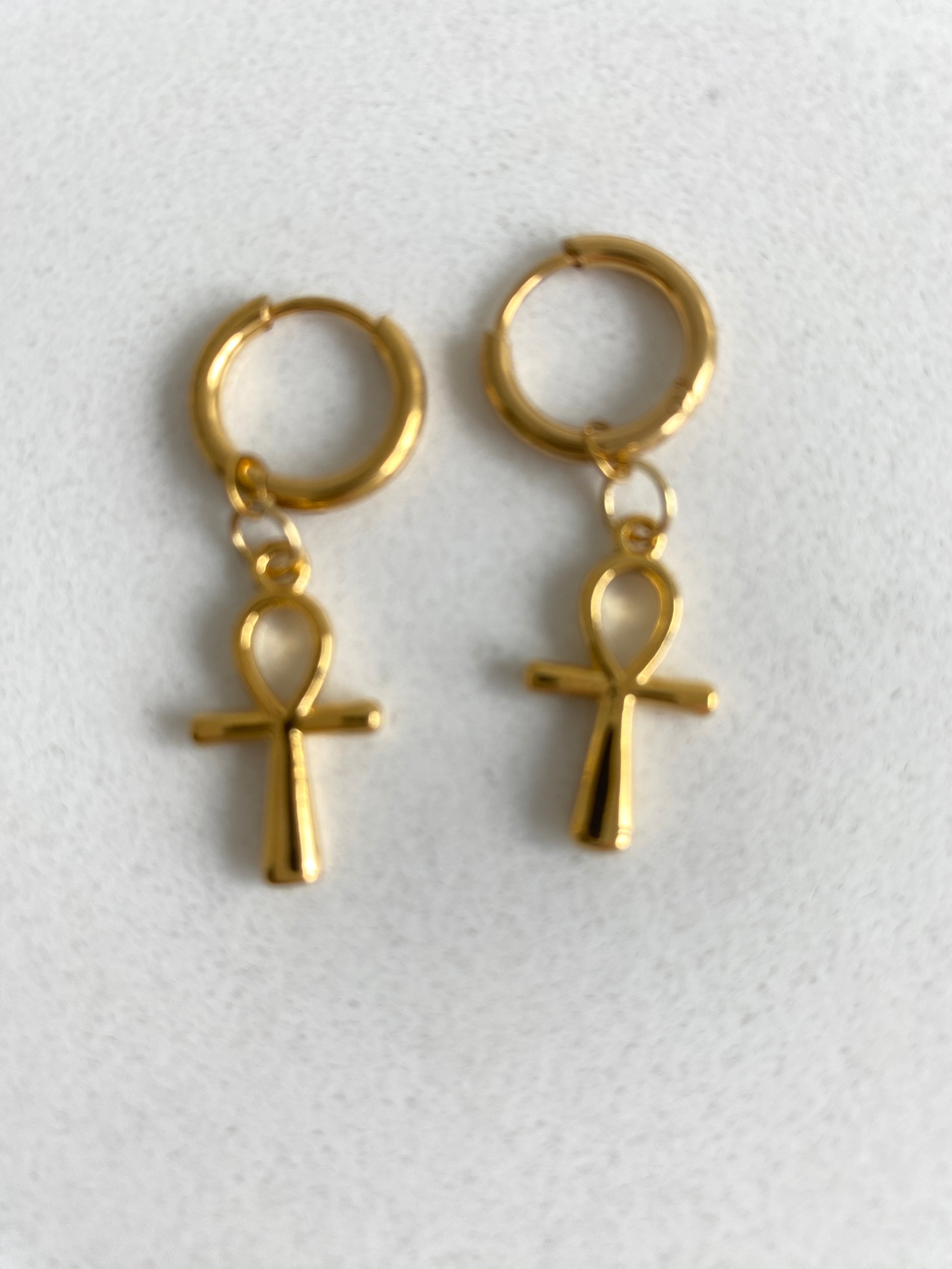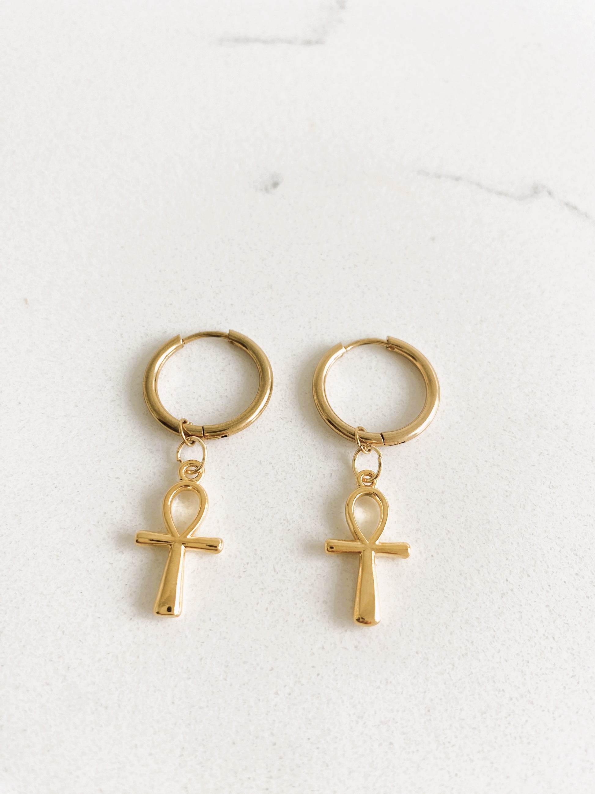 These simple cross earrings, available in small, medium, and large hoop sizes, are crafted to enhance your sense of faith, life and spirituality, making them a significant and thoughtful addition to your jewelry collection.