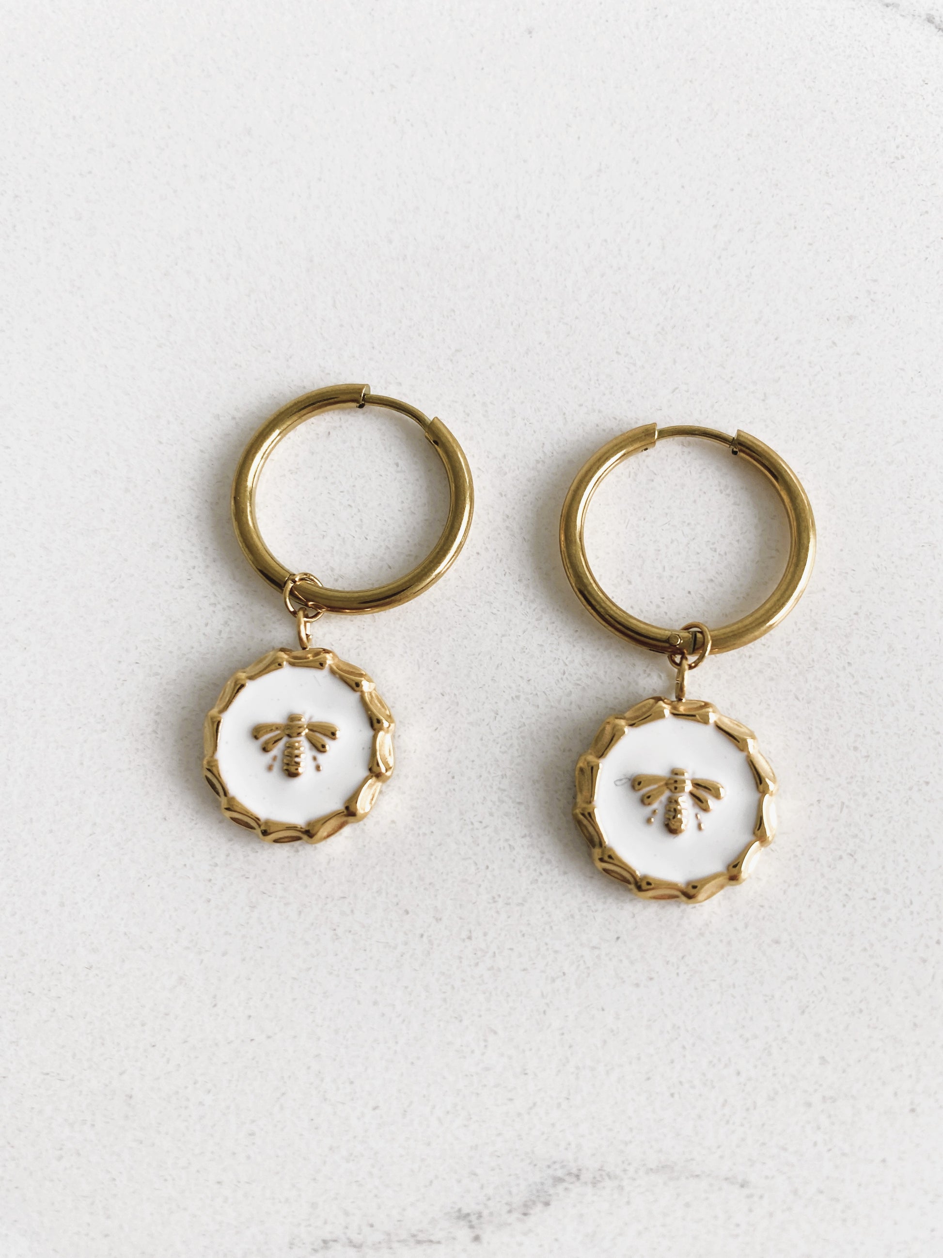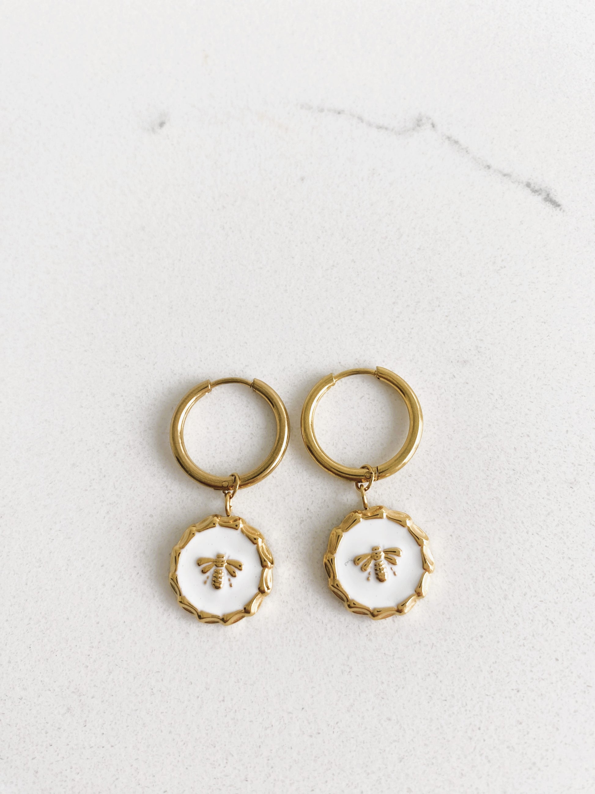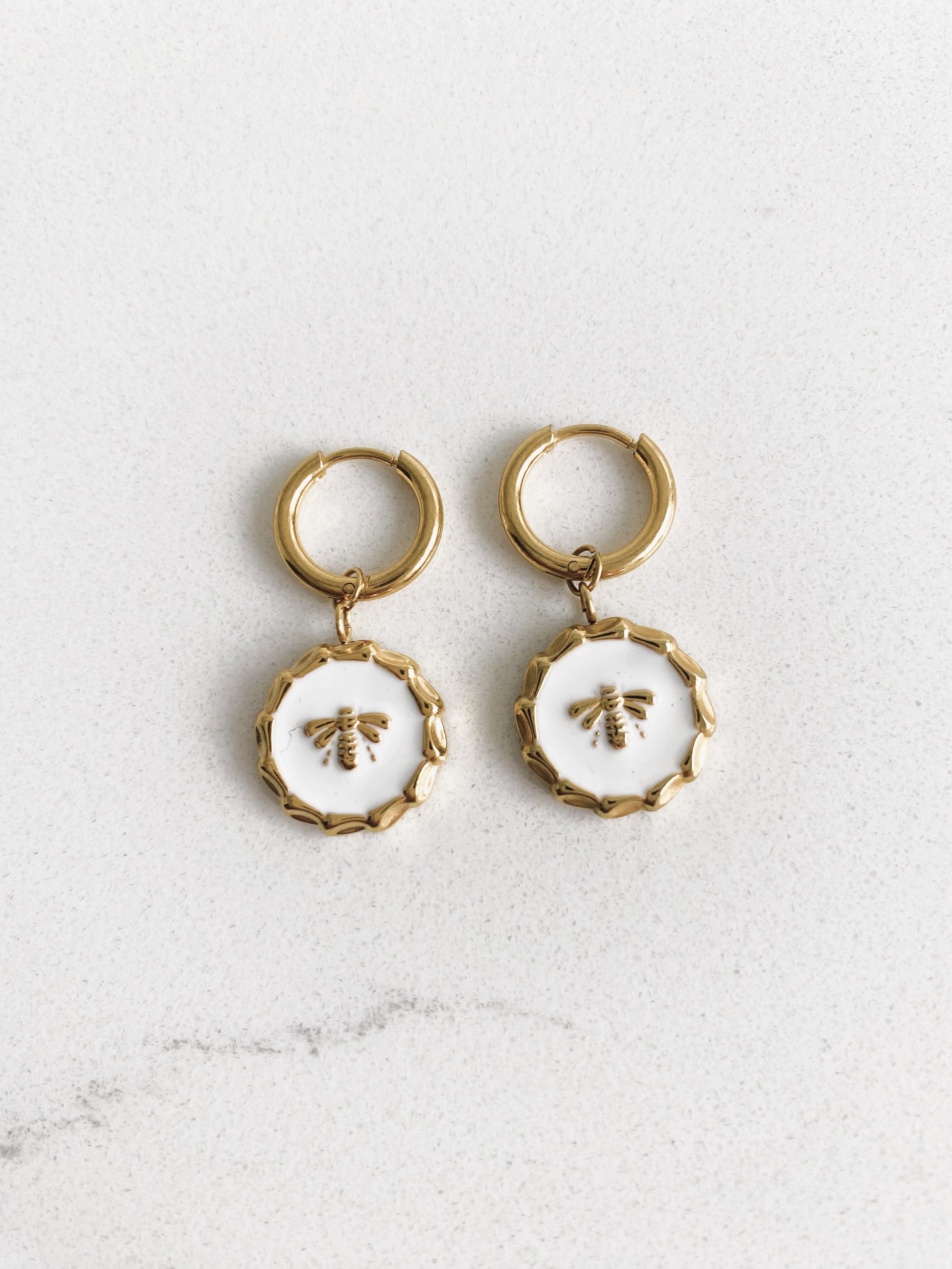These stunning French Bee Earrings are an elegant choice, available in small, medium, or large hoop sizes. In ancient times, bees were seen as messengers between the natural and divine worlds, symbolising the soul, life, and rebirth. Beautifully designed, these earrings are waterproof, hypoallergenic, and tarnish-resistant, they combine beauty with lasting comfort and durability.