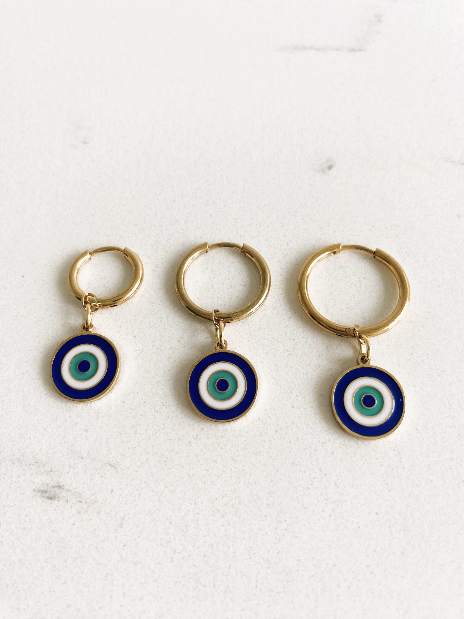 These gorgeous earrings capture the vibrant hues inspired by the deep waters surrounding Mykonos island, bringing a touch of its beauty to your style. Available in small, medium, or large hoop sizes. Beautifully designed, these earrings are waterproof, hypoallergenic, and tarnish-resistant, they combine beauty with lasting comfort and durability.